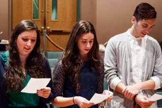 2014-11-14-SCJ-Haley-Juliette-Brandon-Pledge_DSC8060 Published November 18, 2014 at 1200 × 800 in Marywood University inducts 10 new members ← Previous Next → New members Haley O’Brien, Juliette Meyers, and Brandon Melo recite the initiation pledge. Photo credit: Paul Sevensky