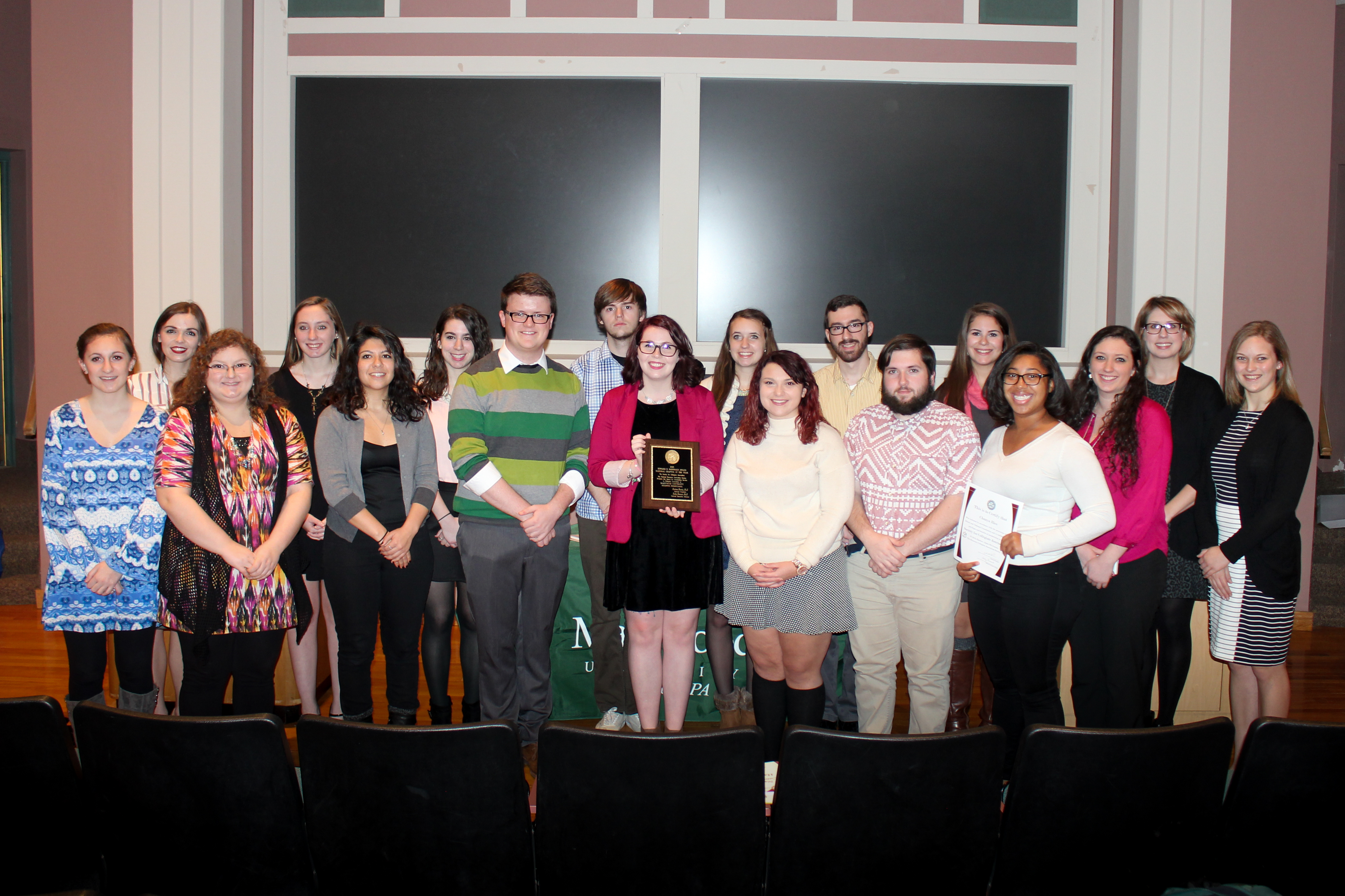 The Marywood University Chapter accepted the Edward E. McDonald Award Chapter of the Year Award at their annual induction ceremony held on November 13, 2015. Photo courtesy Marywood University.
