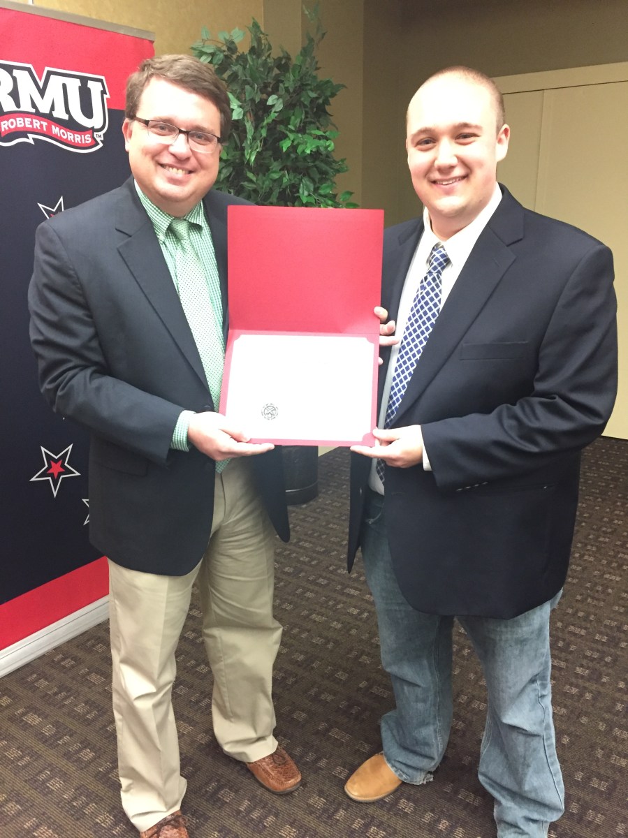 img_7732 Published October 17, 2016 at 2448 × 3264 in RMU initiates, celebrates new and returning members Next → Eddie Sheehy receives his Certificate of Merit award from chatper adviser Anthony Moretti.